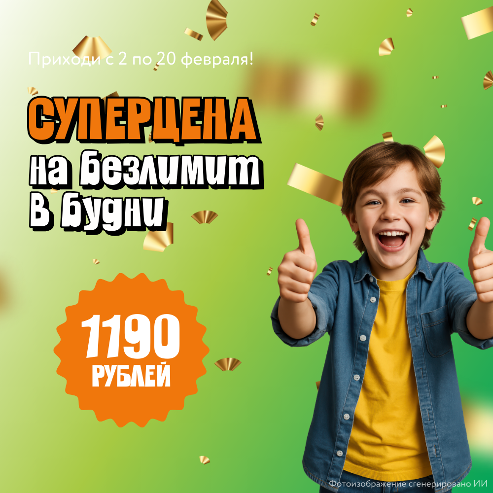🎈 Со вторника по пятницу стандартный безлимитный билет в парк — всего 1190 рублей, вместо 1390 рублей!