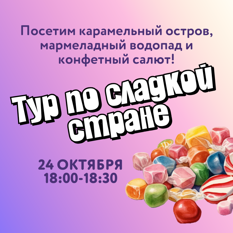 В каникулы отправляемся на карАмельный остров, посмотрим на мармеладный водопад, запустим конфетный салют и найдем сокровищницу СЛАДОСТЕЙ!
